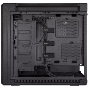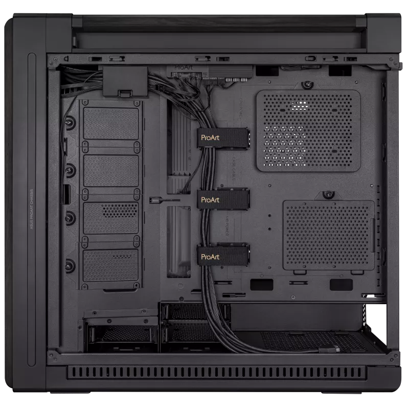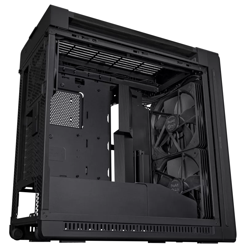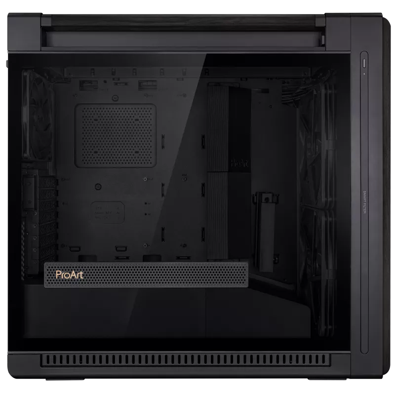 ProArt PA602 E-ATX computer case, 420 mm radiator support, one 140 mm and two 200mm pre-installed system fans, front panel IR dust indicator, power lock latch, tool-less PCIe mounting, USB 20Gbps support